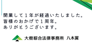 コラム 開業1周年のご挨拶 平素より、格別のご高配を賜り、厚く御礼申し上げます。2024年10月1日の開業から、早いもので1年が経過いたしました。 この1年間は、多くのご依頼者様との出会いに恵まれ、弁護士として多岐にわたる分野で経験を積むことができました。案件をご依頼... 2025.10.01 コラム交通事故企業案件刑事事件法律相談
