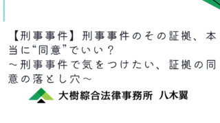 コラム ⚠️【刑事事件のその証拠、本当に“同意”でいい?】 刑事事件で気をつけたい、証拠に対する同意の落とし穴🎭 登場人物🧑🦱 ダイキ:兄が控訴審に入ったばかり。証拠の話を聞いて不安になっている👨⚖️ たいじゅ先生:ダイキの兄の控訴審を担当している、少しだけ優しい弁護士📞控訴審の準備中、事務所に... 2025.04.24 コラム刑事事件