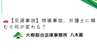 コラム 🚗【物損事故、弁護士に頼むと何が変わる?】 たいじゅ先生がわかりやすく解説!🎭 登場人物🧑🦱 ダイキ:交通事故(物損事故)に遭い、対応に不安を感じている相談者👨⚖️ たいじゅ先生:交通事故案件も得意な、少しだけ優しい弁護士📞 物損事故の対応に悩むダイキ…🧑🦱 ダイキ:「たいじゅ... 2025.04.28 コラム交通事故